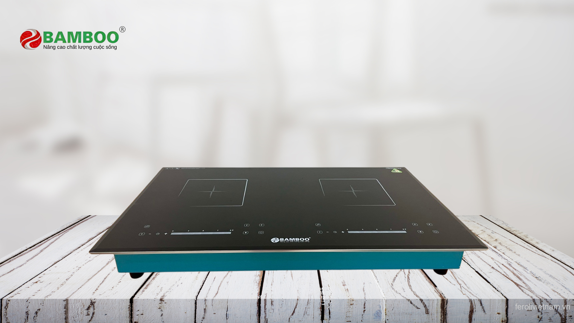 Bếp từ đôi Bamboo BB25 có thể lắp đặt âm tạo sự sang trọng cho căn bếp. Mặt bếp làm bằng kính cường lực sáng bóng, dễ dàng lau chùi sau khi sử dụng.