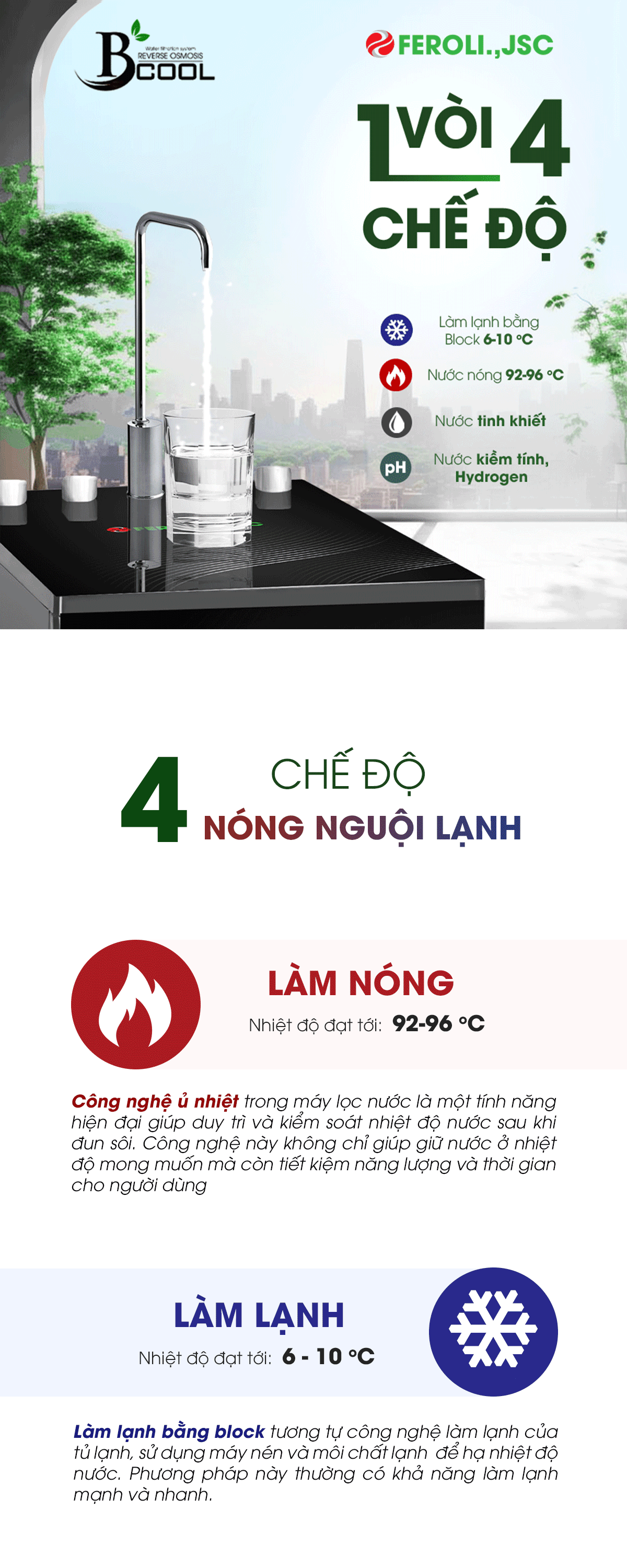 - - 1 vòi 4 chức năng: nước nóng, nước lạnh,nước kiềm, nước tinh khiết.